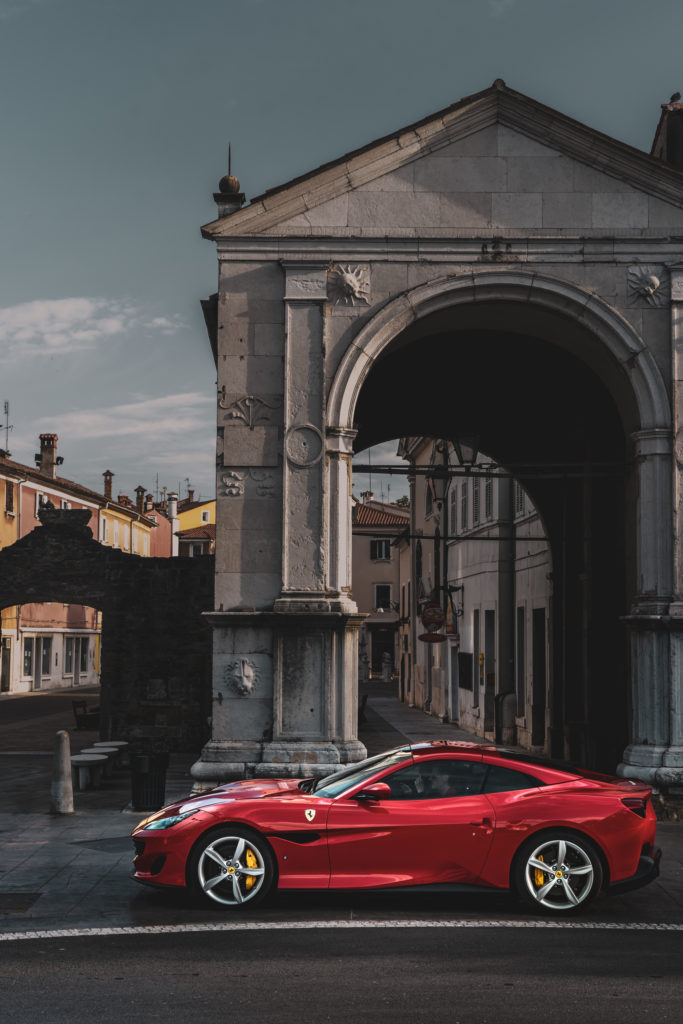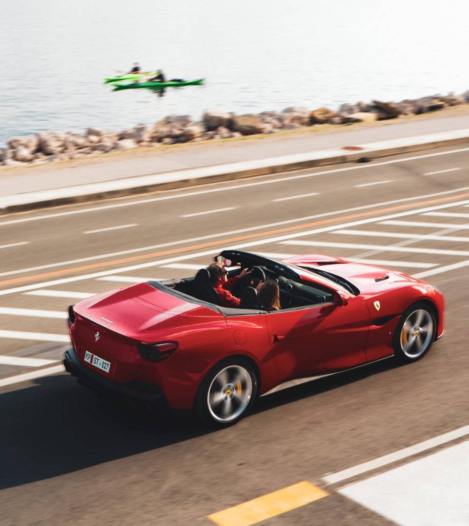 The Ferrari Portofino dominates the GT segment thanks to the perfect combination of sportiness, elegance and comfort. It is a car that you can drive comfortably every day, with performance that should be reserved for the racetrack. The Ferrari Portofino is a super sports car with a convertible-coupé body, with high performance, luxury and elegance. The V8 – 90 ° twin-turbo engine, mounted at the front, gives the car excellent performance: 3855 cm3, 600 HP (441 kW) at 7500 rpm, 100 km/h in 3.5 seconds and exceeds a top speed of 320 km/h. Acceleration from 0-200 km/h in just 10.8 seconds. The powerful convertible offers the option of opening and closing the metal roof while driving, which takes just 14 seconds.